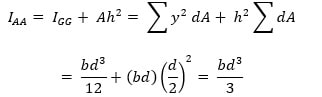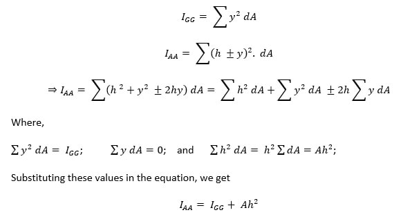 Let AA be any other axis, parallel to the centroidal axis at a distance h from GG axis. Let us consider an elementary area dA at a distance y from the centroidal axis.