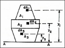 Figure 6.7 shows a section of three regular areas A1, A2, and A3. The moment of inertia of the whole section about any axis AB is given as,