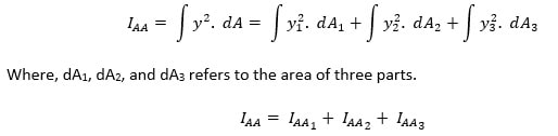 Statement: The moment of inertial of a composite section is equal to the sum of the moments of inertia of its individual parts.