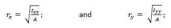 Where, rx and ry are the radius of gyration w.r.t x and y axes respectively. It has the unit of length.