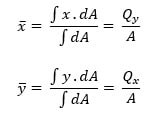 The coordinates of the centroid G are generally equal to the first moments divided by the area itself.