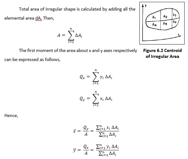 Figure 6.1 shows a plane area A, with its centroid G having its coordinates .