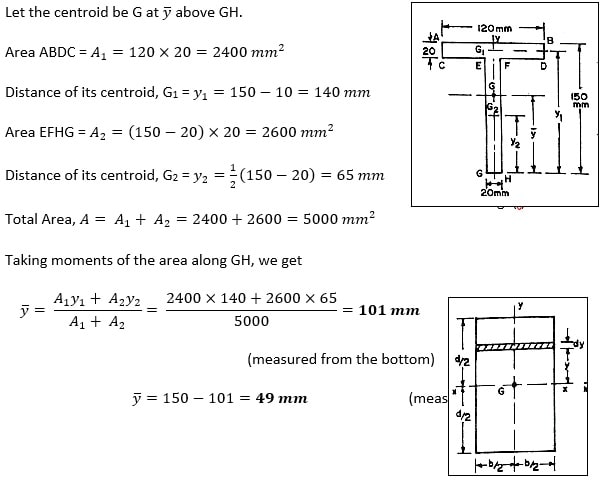 Example-1 Find the centroid of a 120 mm x 150 mm x 20 mm T section.