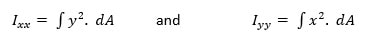 Where, x and y are the coordinates of the differential element of area dA. This is also called the second moment of area.