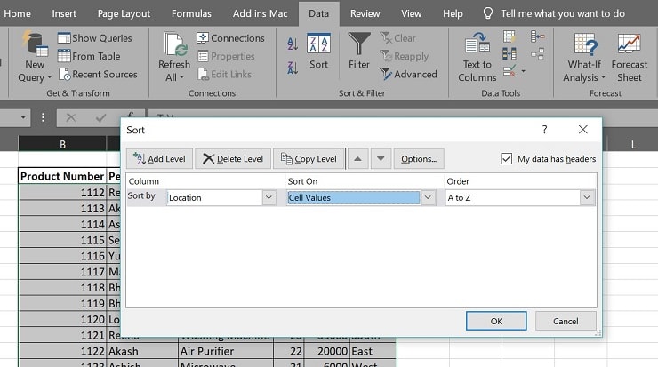 Step 2: Go to data tab then select sort first sort by location the click to Add level and sort the data on person name too as given in below screenshot