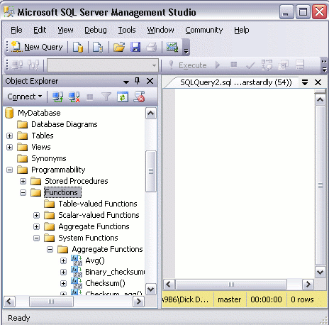 Note that I have minimized the size of the window for this screenshot. Once maximized, you have much more room to play with. You can use SQL Server Management Studio to create as many databases as you like. You can also connect to as many databases on as many servers as you like.