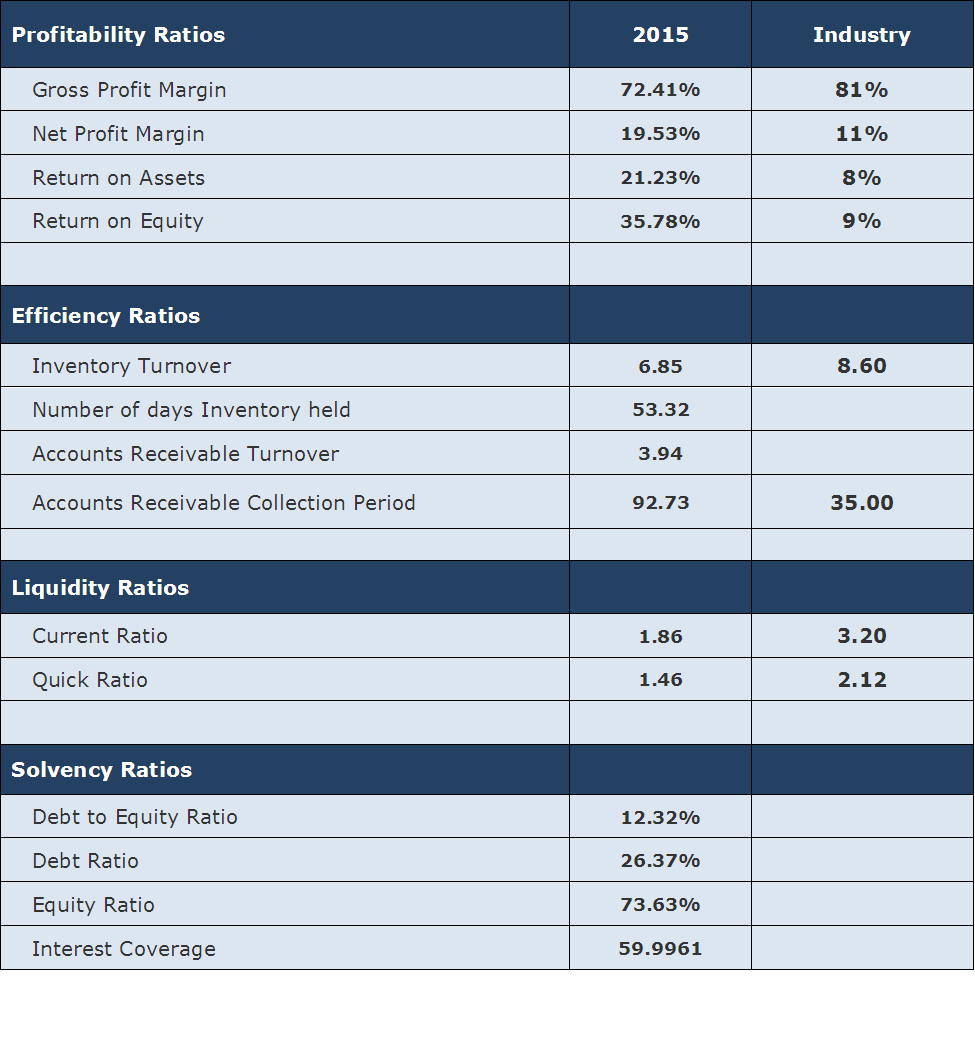PARTICULARS | INDUSTRY | ACTUAL (2015) | |