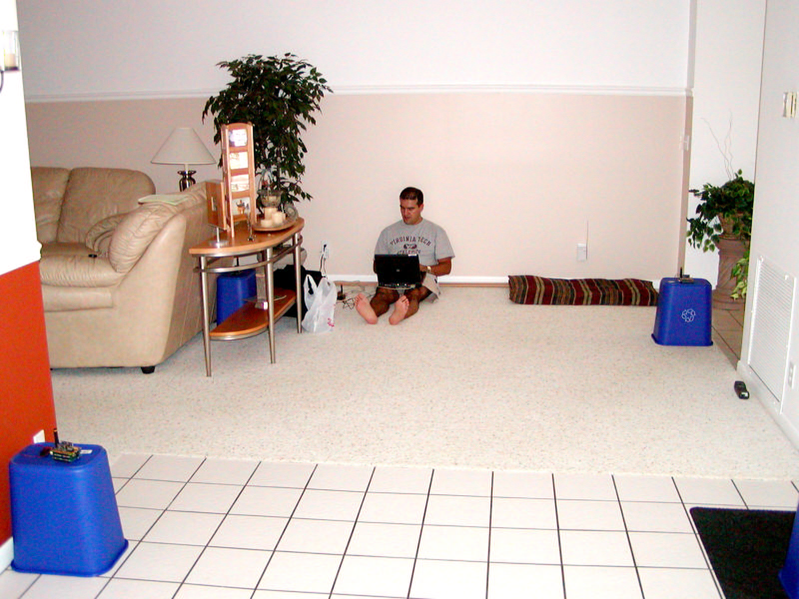 Fig. 10. Residential home testbed experiment, with 3 devices shown (one is hidden between the couch and the table).