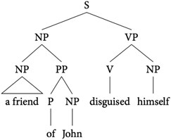 Fig 1. A syntactic parse of the sentence A friend of John disguised himself.