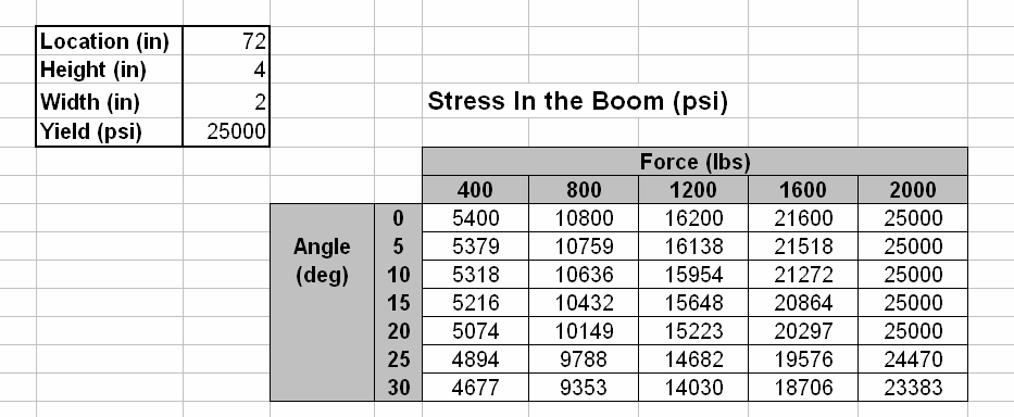 | Assignment: Create a VBA function that can be used in an Excel spreadsheet that calculates the stress for several forces and angles. The yield point, location, height and width should be values easily changed. |