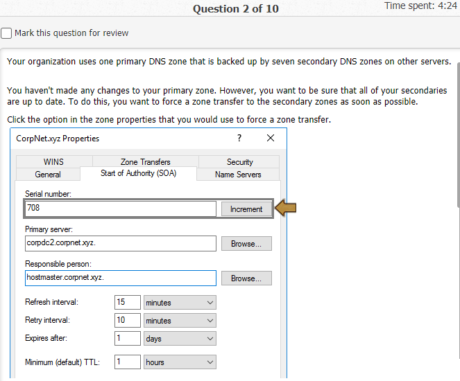 In this lab, your task is to configure DNS on the CorpDC server as follows: