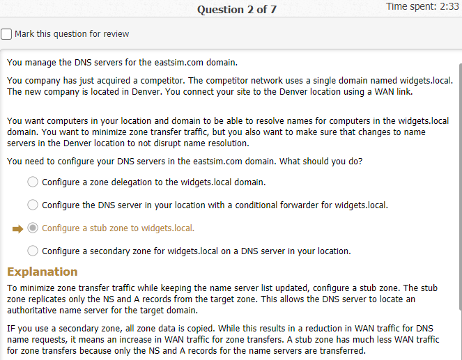 domain named westsim.local. you manage your network’s dns servers for the westsim.com zone