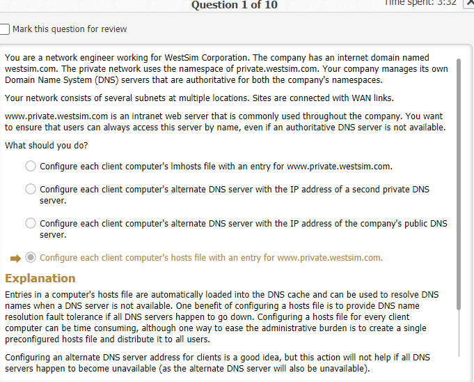 Your Active directory network uses the internal dns namespace private.westsim.com. several other active directory domains also exist, which are children to the private.westsim.com domain. On the internet, your company uses westsim.com for its public domain name.