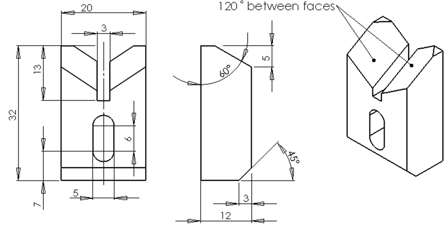 Create a new part named " firstname_hw03_ex2" and create the following geometry according to the dimensions. Use all the shown dimensions. Do not add more dimensions. Verify design intent by modifying dimension values. Add a cross section named "A" through the part symmetry plane. Use only what we have learned so far.