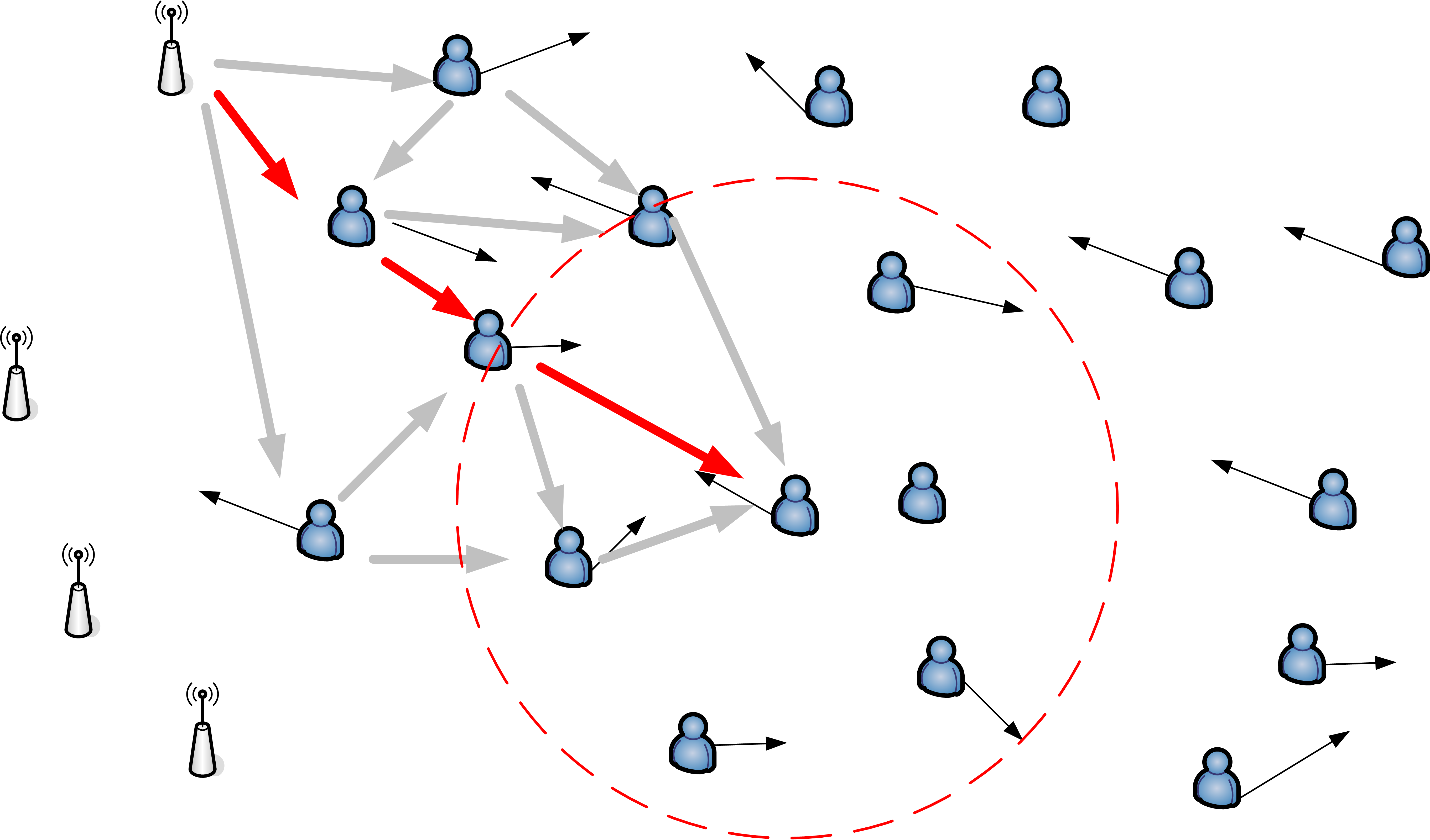 Comparing to the current state of the art, our approach takes advantage of network dynamics and chaotic node distribution. Moreover, we desire a solution that handles the lateration problem while contact to anchors is not available. The nodes to be localized are allowed to move at different speeds and may change their orientation whenever they want.