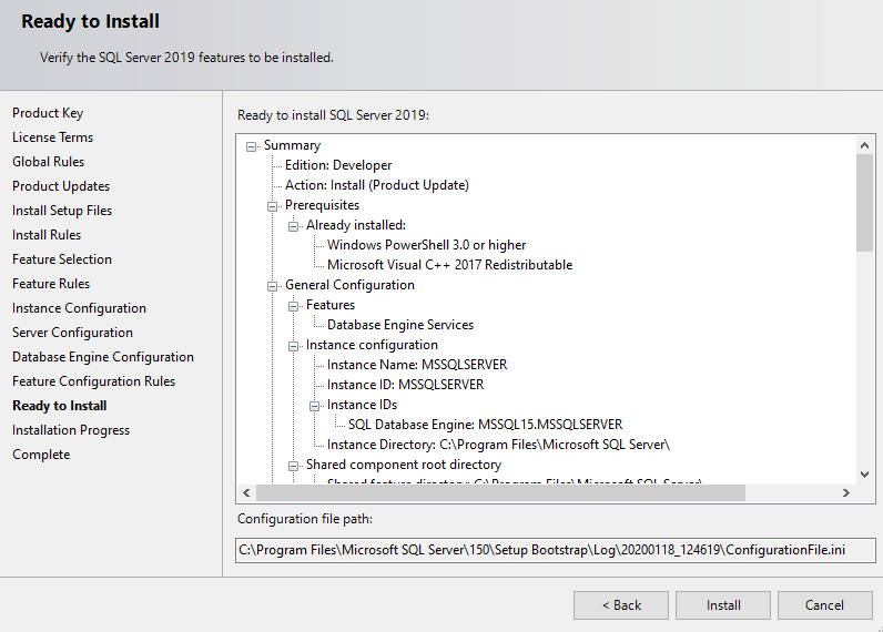 5.On the Product Key page make sure that the selected Edition is “Developer” click Next.