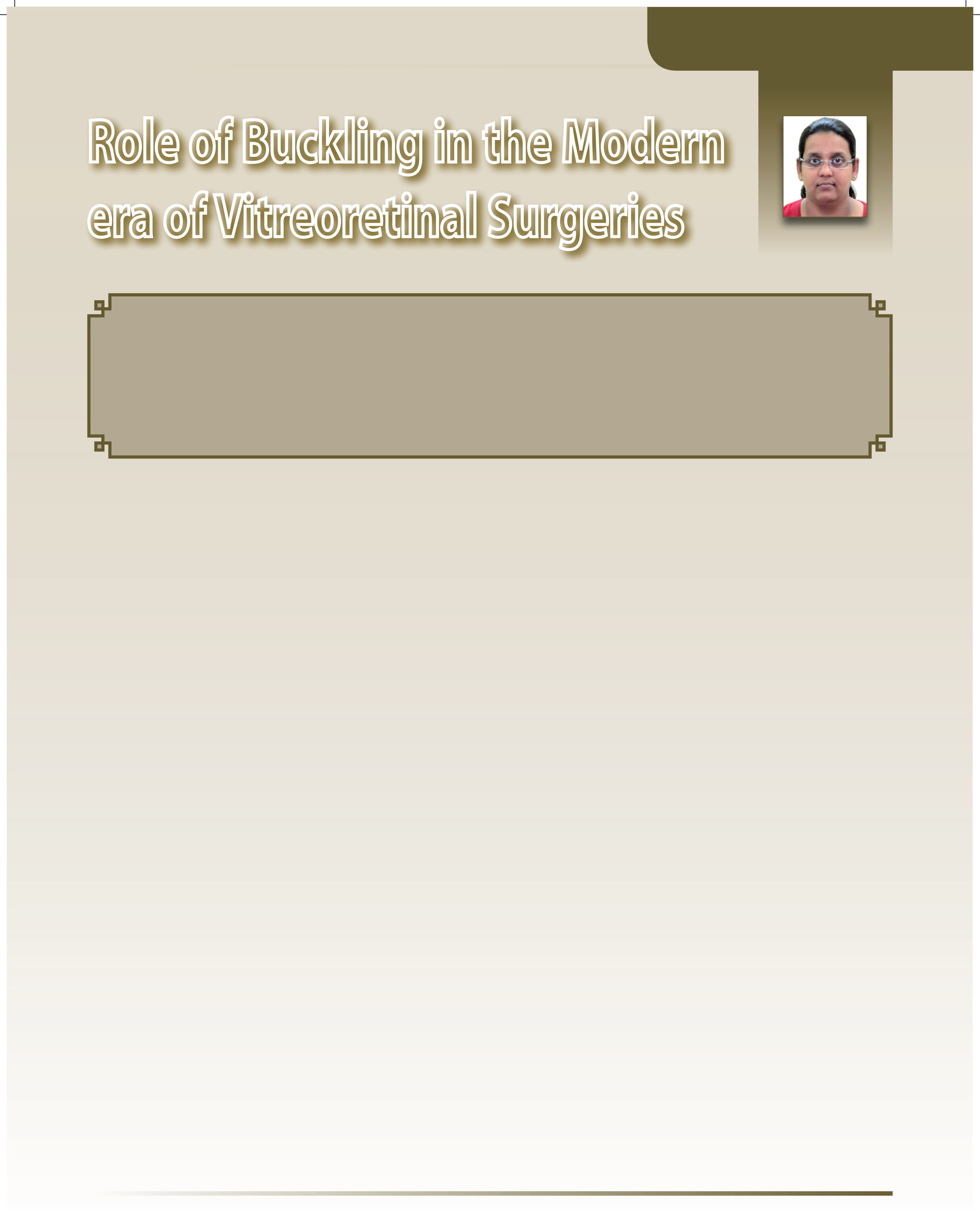 J ules Gonin changed the entire concept of pathogenesis of retinal detachment and identified retinal breaks as the cause of retinal detachments1. He developed the surgical technique of drainage of subretinal fluid beneath the retinal break combined with direct treatment of the break by transscleral cautery (ignipuncture) with a success rate of 40%2. The invention of binocular indirect ophthalmoscope made the localisation of the breaks easy. Custodis in 1949 described non drainage sclera buckling with polyvinyl explants with a success rate of 80%. Charles Schepens in 1951 described a technique of sclera buckling with the help of intrascleral silicone implant with diathermy with a success rate of 80%. In 1964 Harvey Lincoff used cryopexy along with silicone sponges for treatment of retinal detachment with a success rate of about 80%.