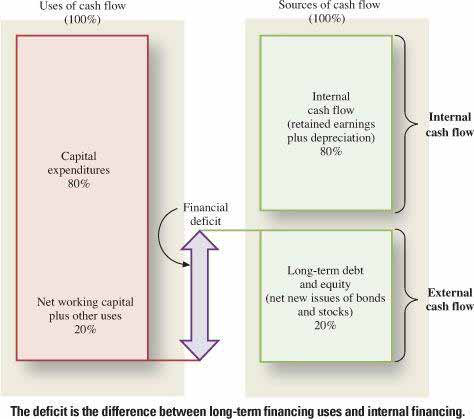 4. Firms need financing for capital expenditures, working capital, and other long-term uses. Most of the financing is provided from internally generated cash flow. In the United States only about 25 percent of financing comes from new debt and new equity. Only firms in Japan have historically relied more on external financing than on internal financing.