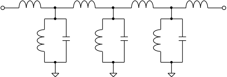 Fig. 1. Symmetrical filter prototype with three coupled resonators and inductively coupled ports.