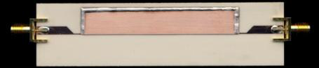 A concern of cutting the cavity in half is radiating energy from the open structure. The broadband filter response shows similar evanescent-mode SIW and HMSIW performance, particularly with similar S21 traces up to the spurious response frequency range; meaning that significant energy is not radiated from the cavity relative to the SIW structure. Unlike a conventional HMSIW filter, energy is well contained by the evanescent-mode cavity structure where the passband center frequency is half the cavity cutoff frequency.