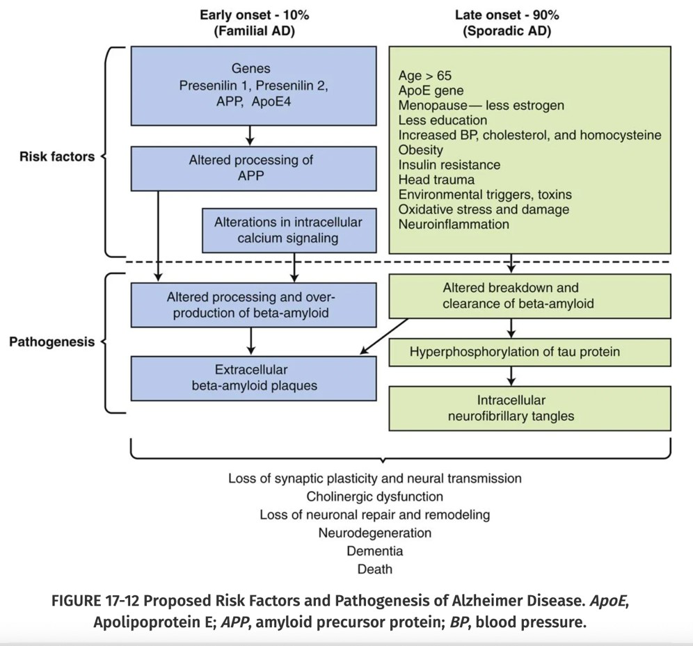 &McCance, 2014). In America, it is estimated that 5.4 million have AD with an expectation of an increase to 11-16 million by 2050. The greatest risk factor is family history. Other risk factors are diabetes, hypertension, hyperlipidemia, obesity, smoking, depression, cognitive inactivity or low educational attainment, female gender, estrogen deficit at the time of menopause, physical inactivity, head trauma, elevated serum homocysteine and cholesterol levels, oxidative stress, and neuroinflammation (Huether &McCance, 2014).Initial clinical manifestations – subtle and nonspecific often associated with forgetfulness, emotional causes, and illness.