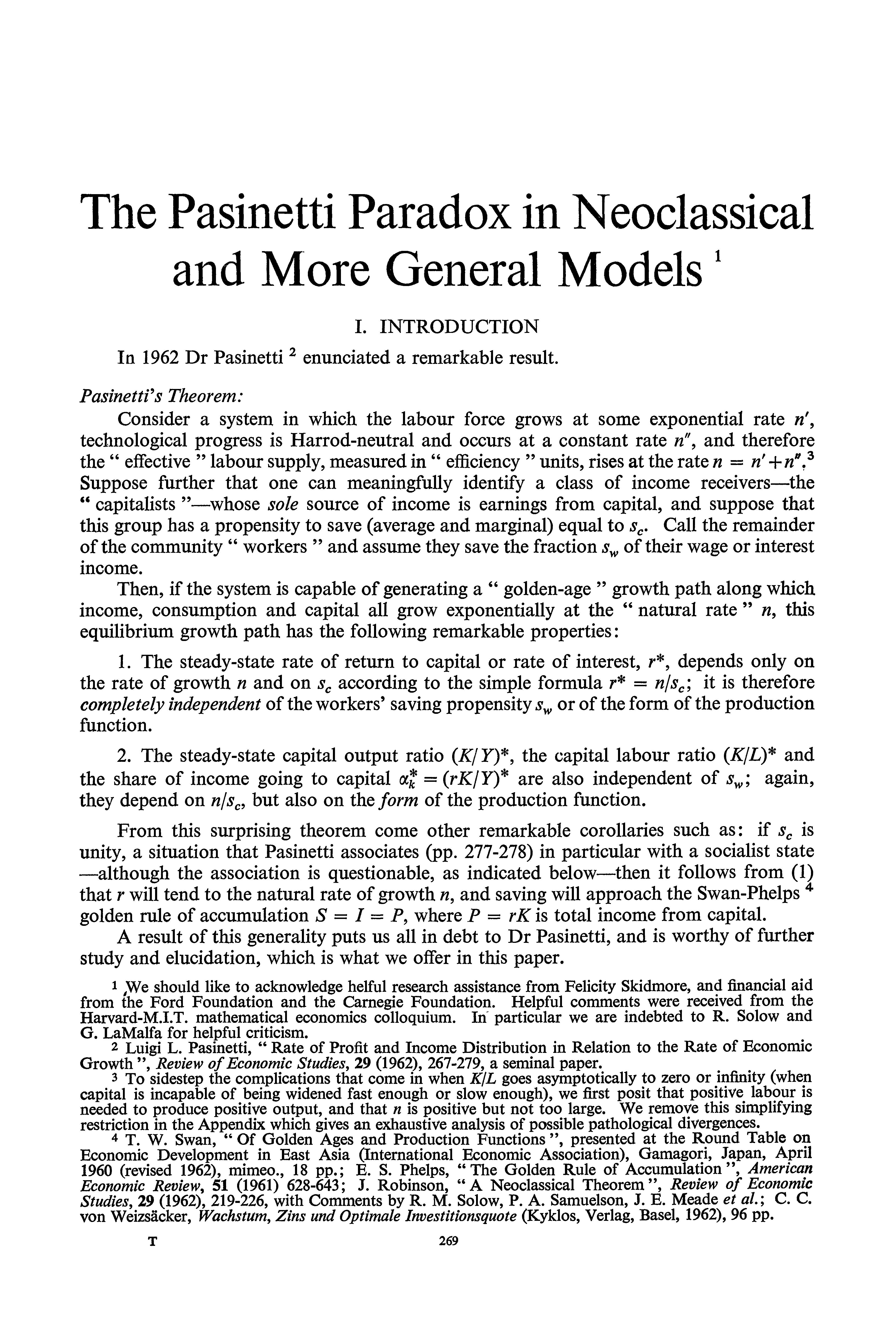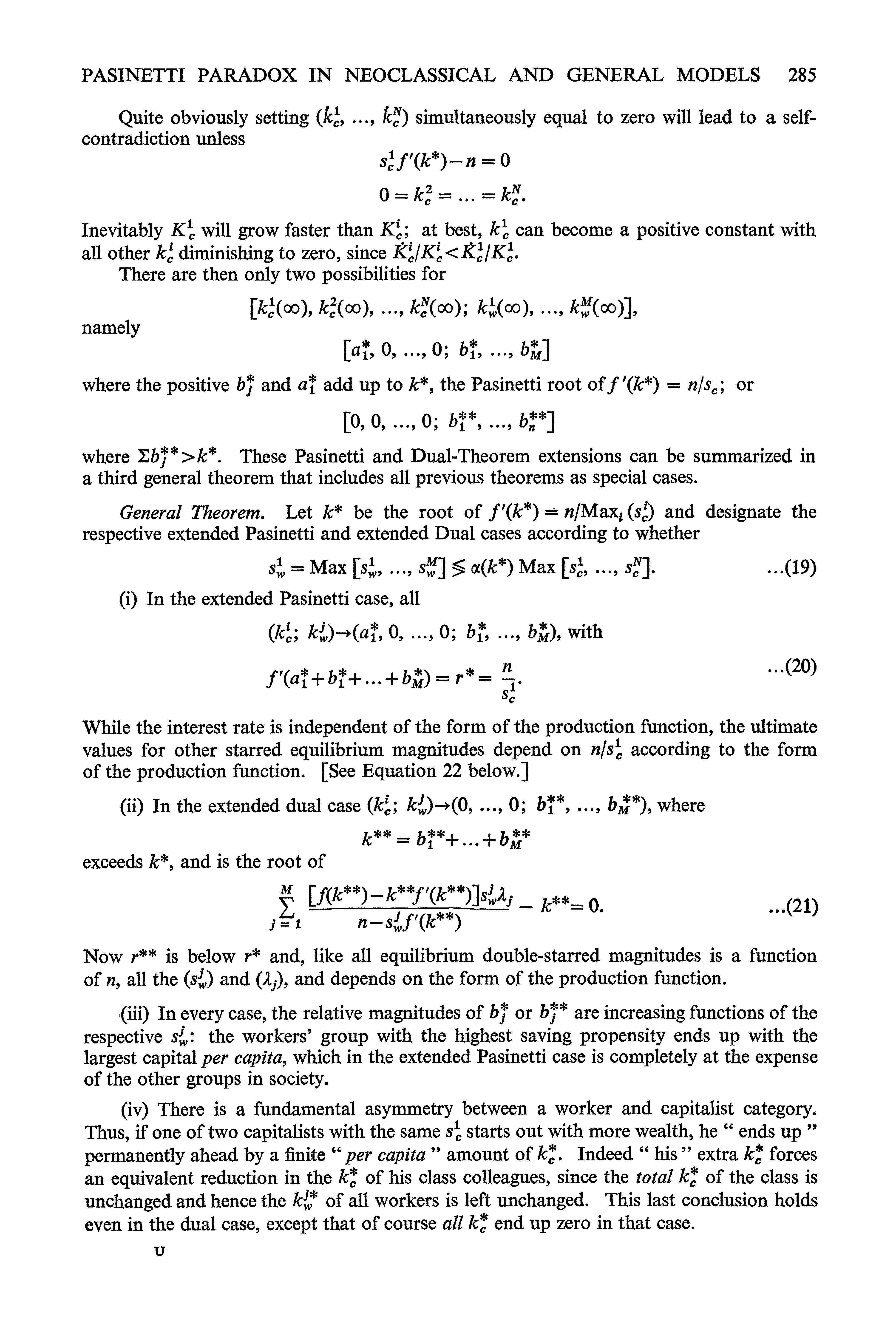 PASINETTI PARADOX IN NEOCLASSICAL AND GENERAL MODELS 285