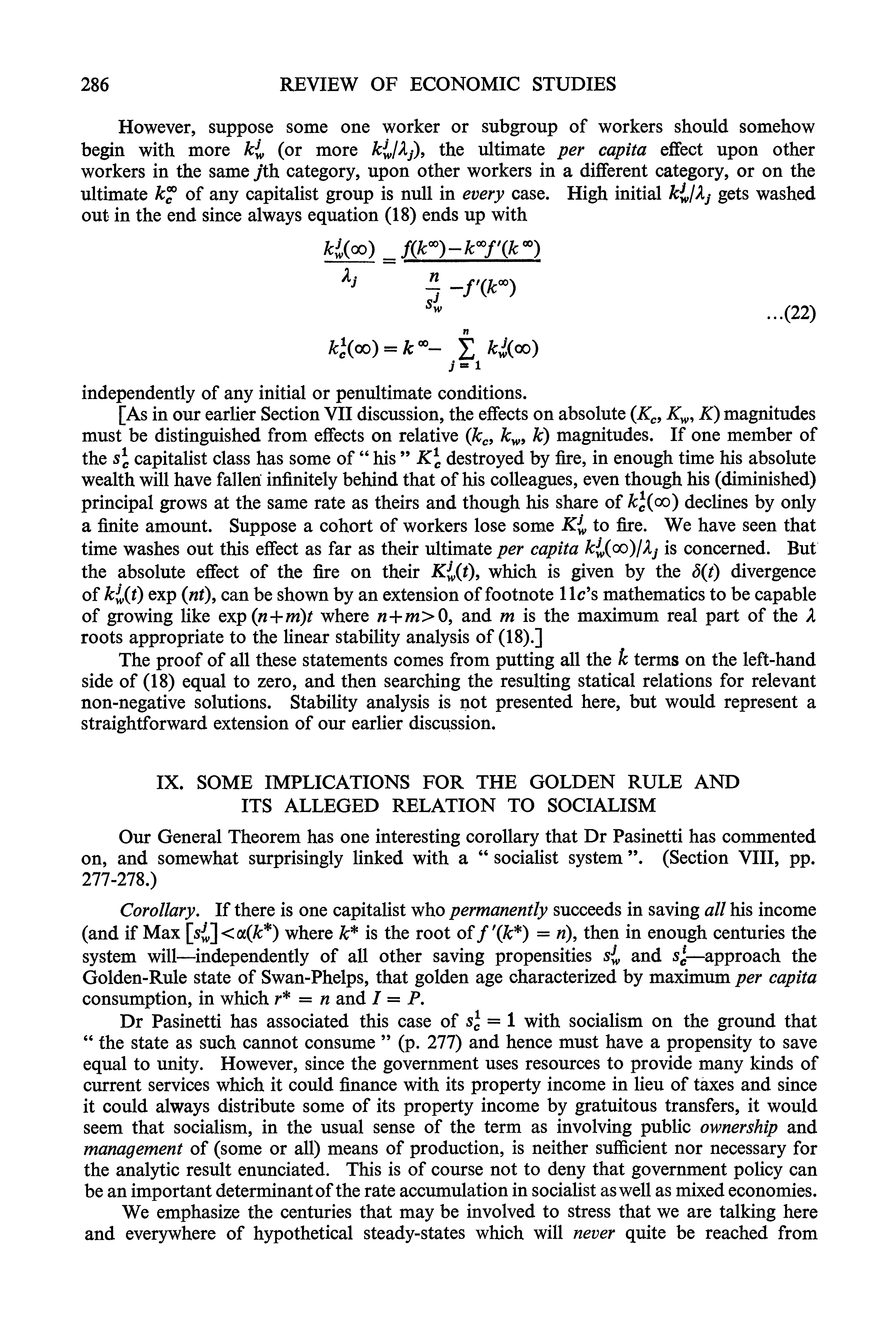 In view of the many nice properties sketched out above which hold for an economy satisfying the saving assumptions of the present model, it is with some regret that we must confess to most serious qualms over the empirical relevance of these assumptions- notably that relating to the existence of identifiable classes of capitalists and workers with " permanent membership "-even as rough first approximation. These qualms and the grounds on which they rest are set forth in the concluding section.