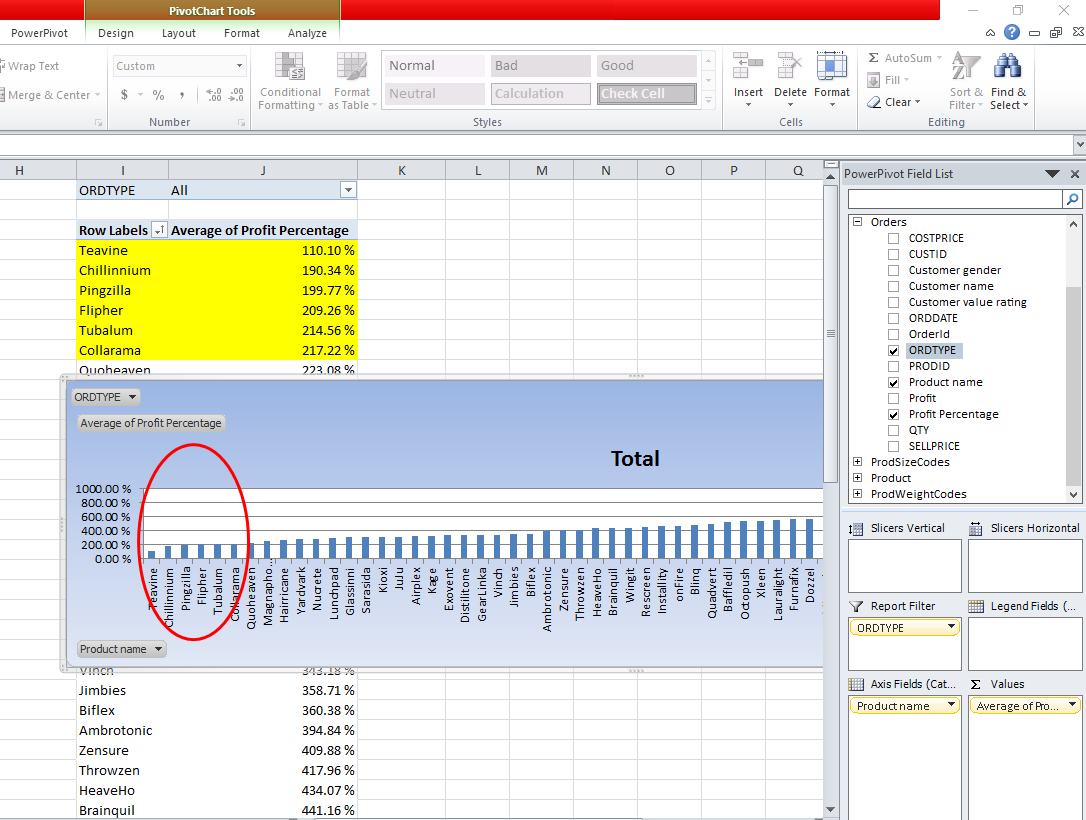 Product name | Sum of Profit | Average of Profit Percentage | Profit sharing |