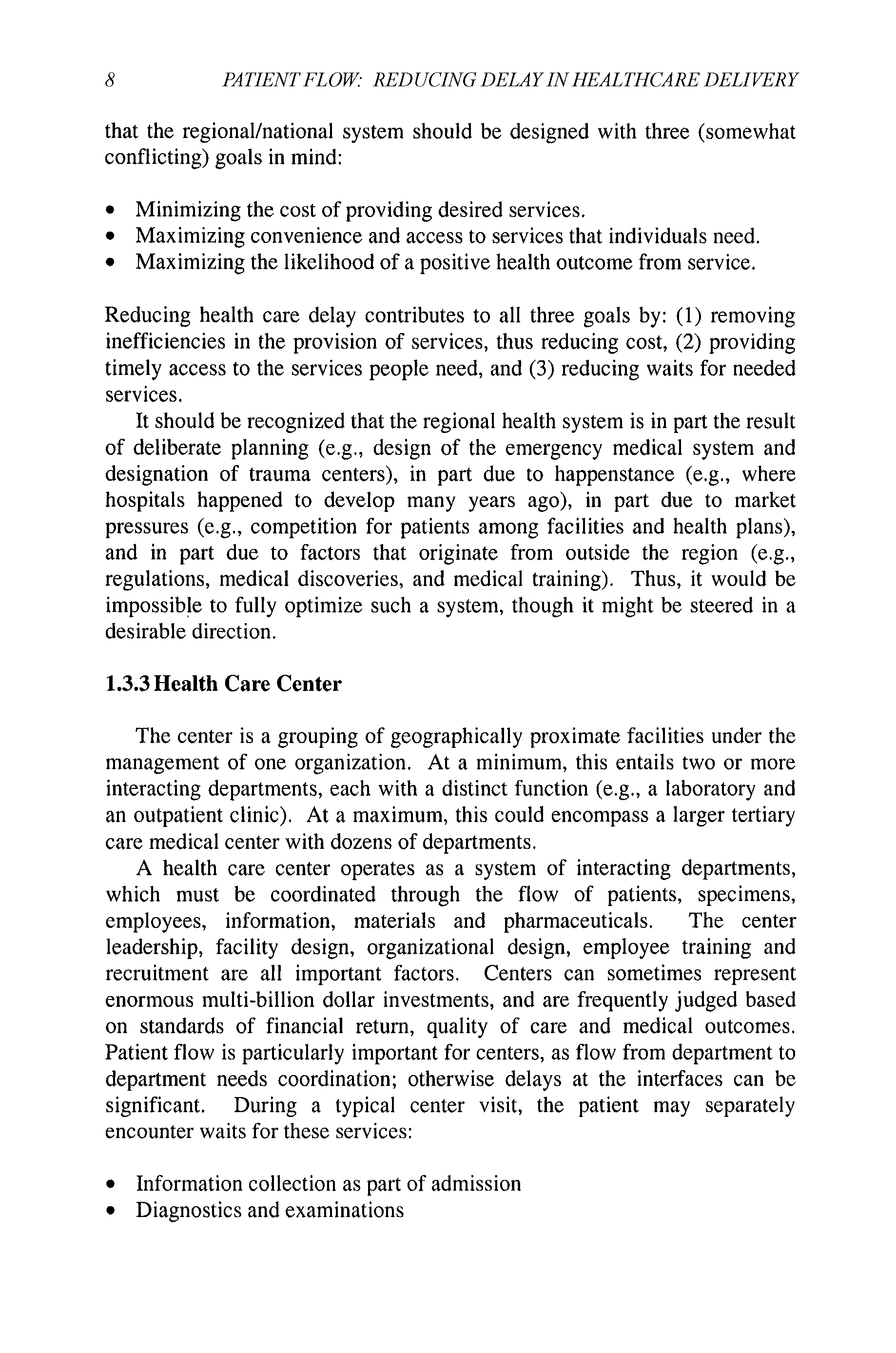 This book presents strategies, concepts and methods that can radically improve the delivery of health care by reducing delays. Our supposition is that much of the delay accepted by the public is both unnecessary and costly. Patients are harmed in the process of delay, not only through wasted time, but through unnecessary suffering, and through adverse medical outcomes. Health care providers are harmed through the added cost and reduced efficiency resulting from the complications of handling delayed patients. For these reasons, it is imperative for all providers to seek out and implement solutions that reduce delay.