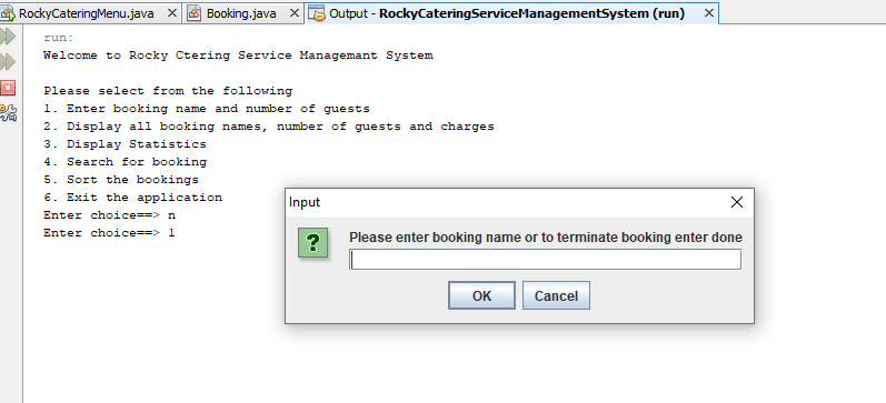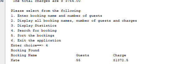 When user enter choice 4 that is to search for booking, program will first check out if there is any booking entered so far. If, no booking is found it will generate an error message.