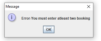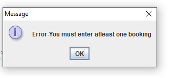 When user select this option, entire bookings will be displayed which are entered so far. But if there is no booking entered, an error message will display on screen.