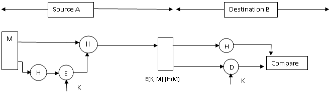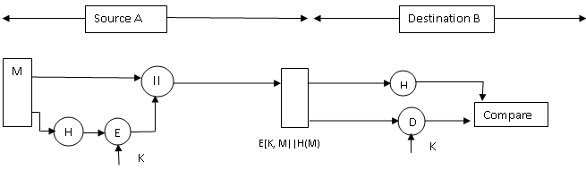 the fixed length hash value. The hash value is appended to the