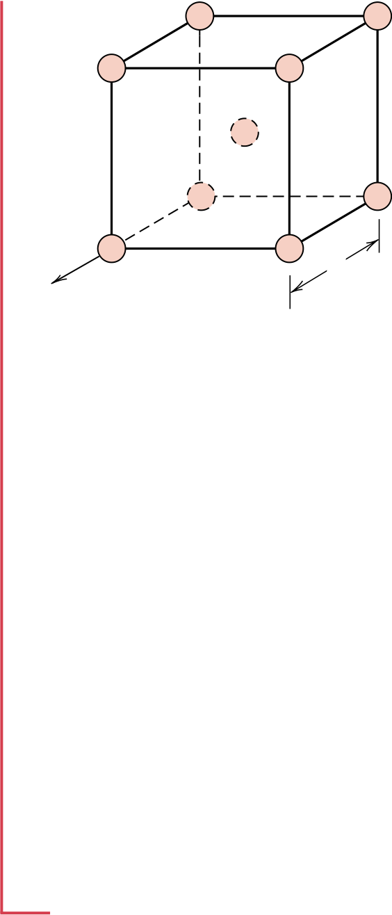 As a basis for our computation let us use the line length within the unit cell, Ll, which in this case is the lattice parameter a—the distance between the centers of atoms M and N. In terms of the atomic radius R,