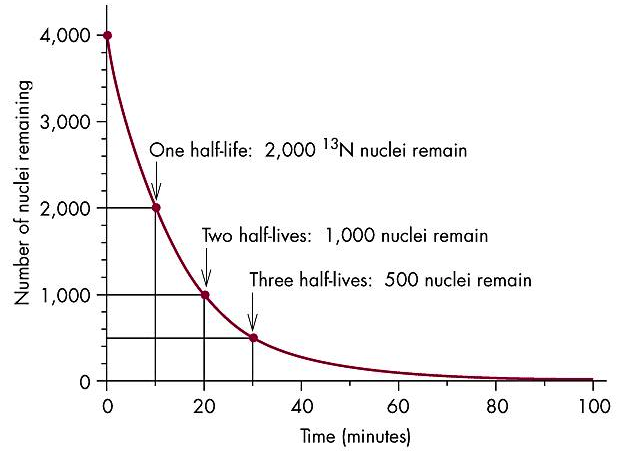 Number of nuclei remaining vs. time elapsed