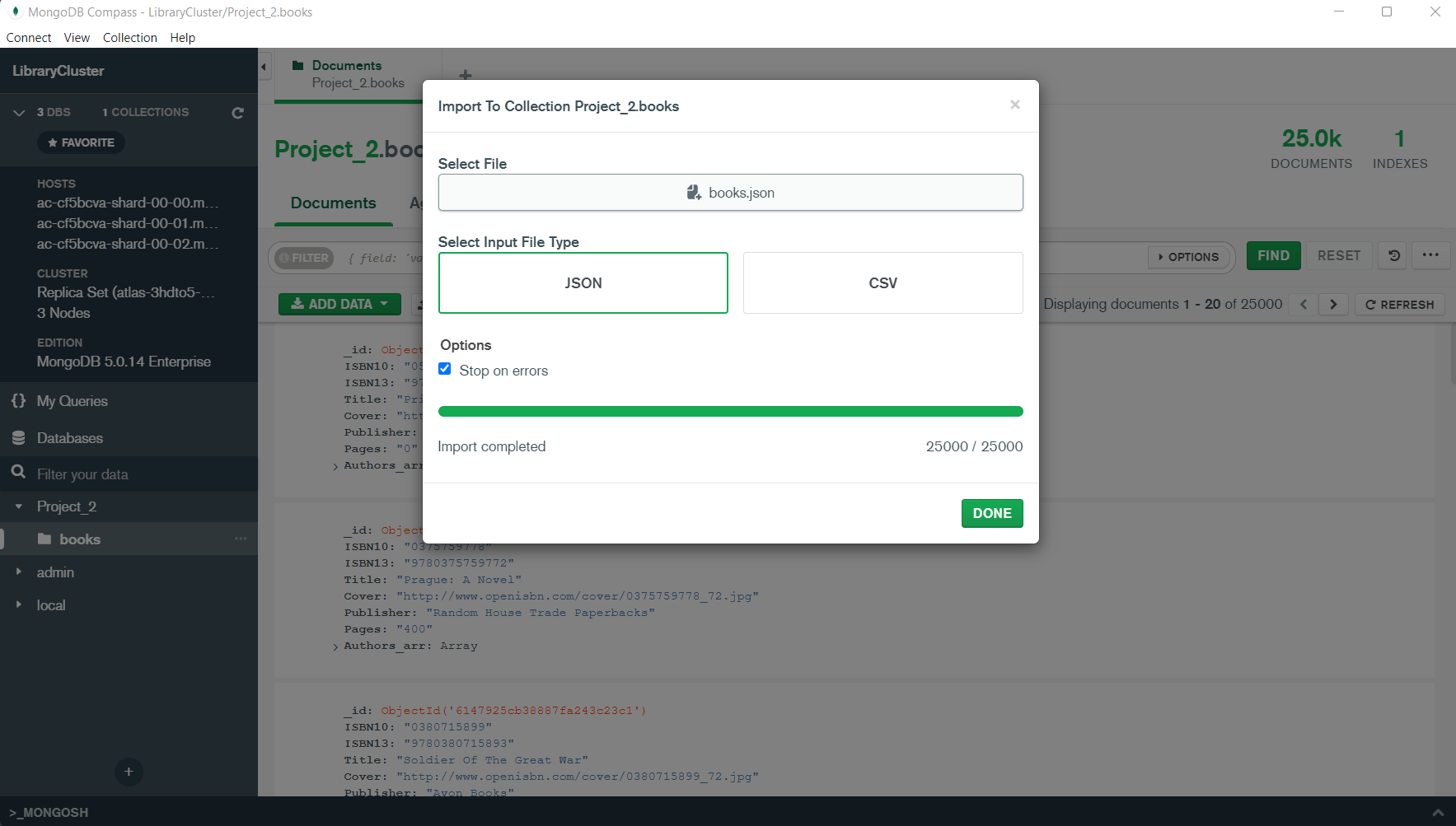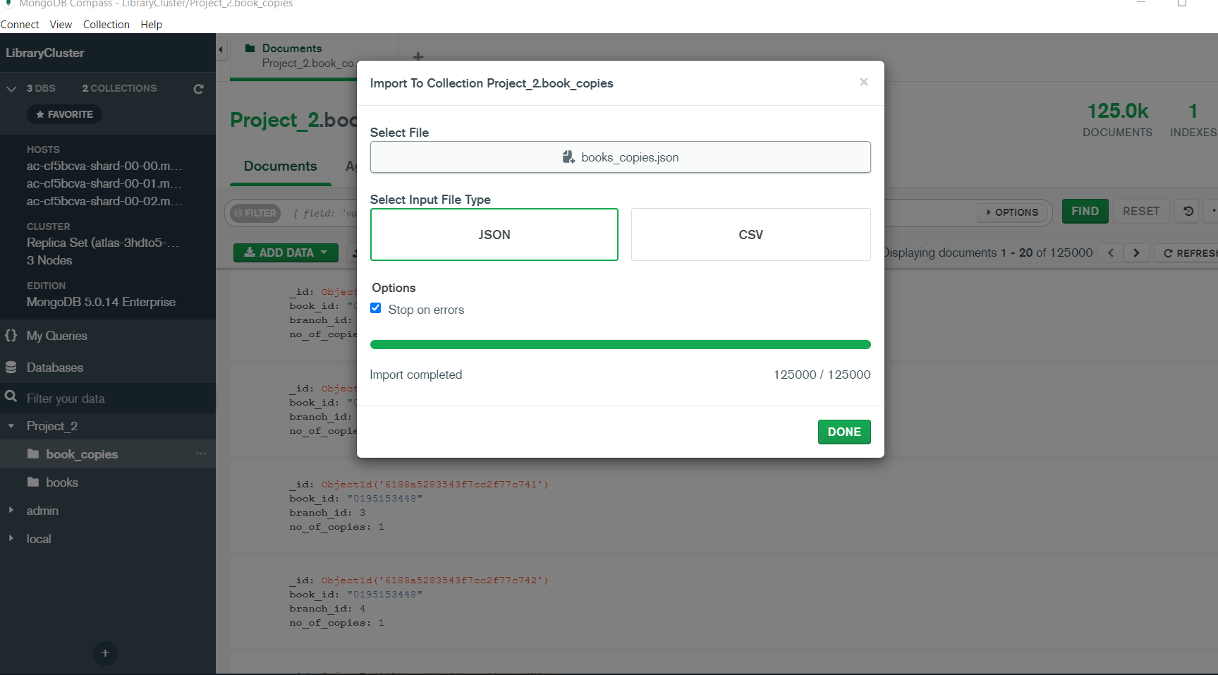 Connection String - mongodb+srv://LibraryUser2:LibraryUser2@librarycluster.mglbdjd.mongodb.net/test