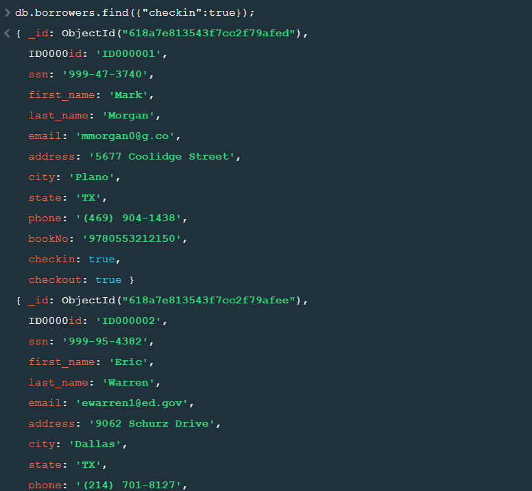 Borrowers file: borrowers information, such as name, SSN (dummy), address, etc. Library branches file: branches address information