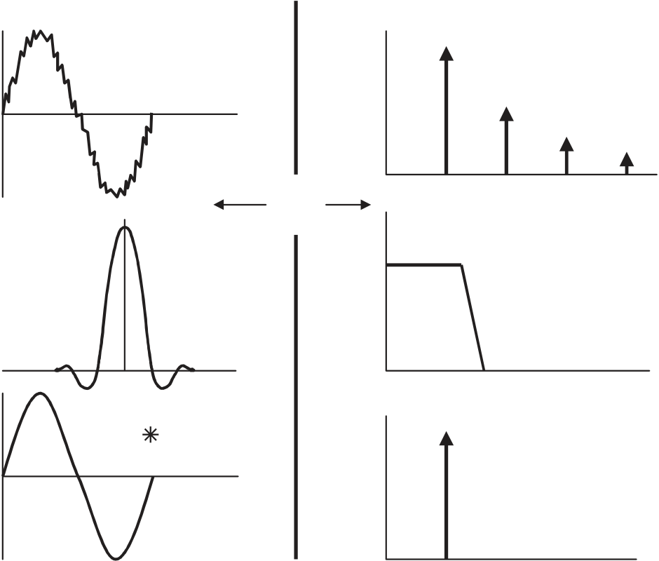 convolution in the frequency domain is equivalent to point-by-point multiplication in the time domain.