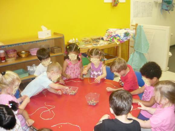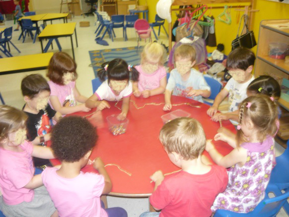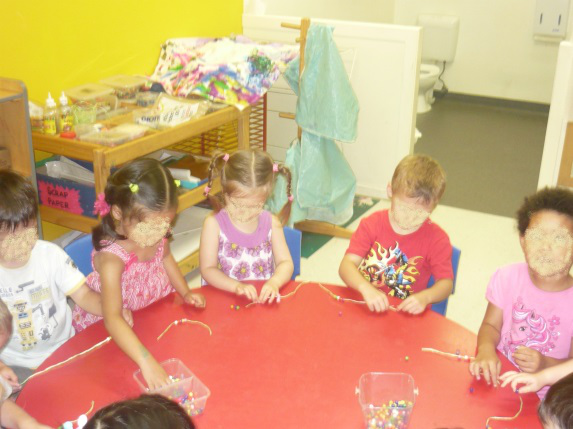 6. Yes, the children have done threading before with pasta, however I provided different types of beads (where they usually only have 1 type of pasta). I chose to do this so I could discuss with the children that there are different types of materials and sizes available for threading.