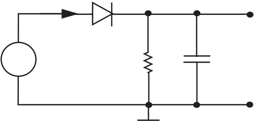 A simple example is shown in Figure 16.11, a circuit identical to the half-wave rectifier already discussed, except for an added capacitor. The output waveform of this circuit will follow the positive peaks of the input wave, so is more efficient for converting AC to DC. The node equation at the vC node is