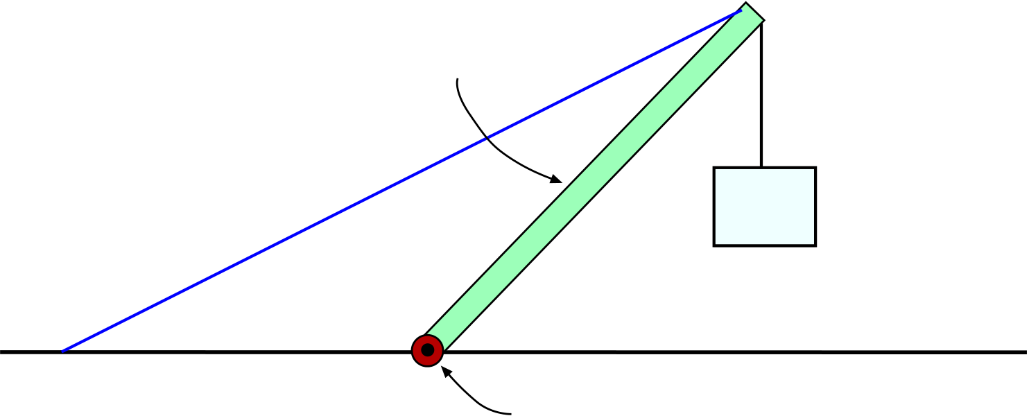 Now, one way to solve the problem would be to let the direction of the hinge force be some angle θ as measured from some line of reference. In fact it will probably be easiest to let the x and y components of this force be the unknowns... I will call them Fh,x and Fh,y. In fact, parts (b) and (c) of the problem ask us for these components directly. We can always get the direction and magnitude later!