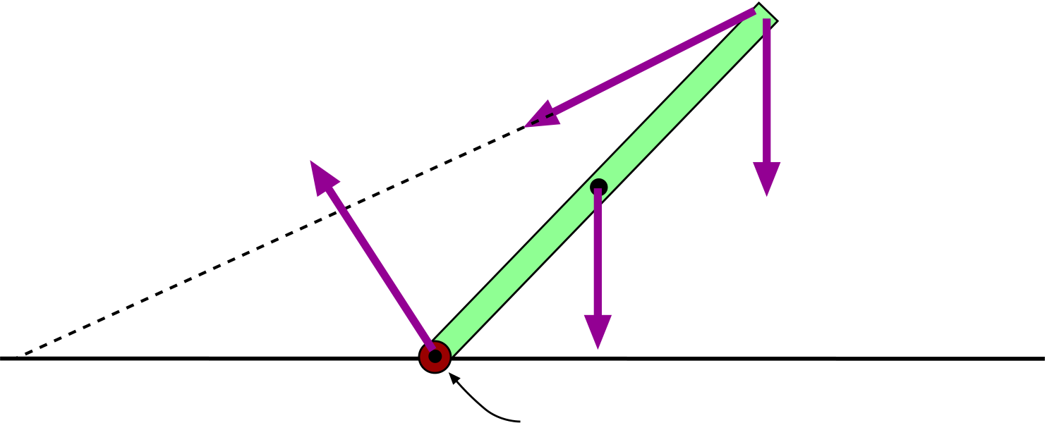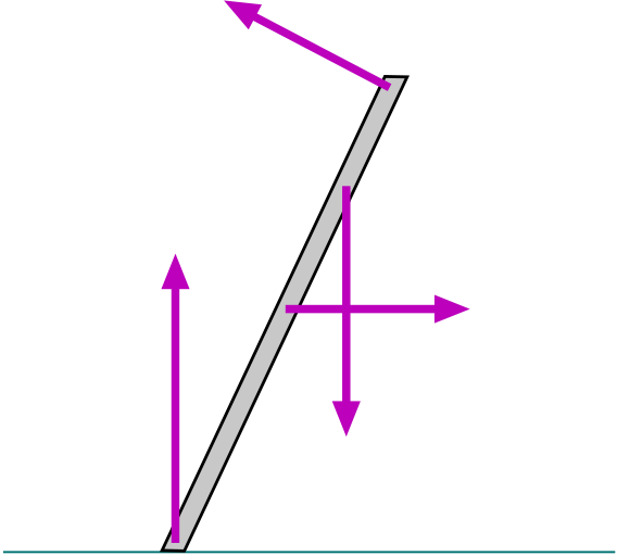 Keeping the geometry in mind, we next think about all the separate forces that are acting on the ladder as it leans against the wall and supports the student.