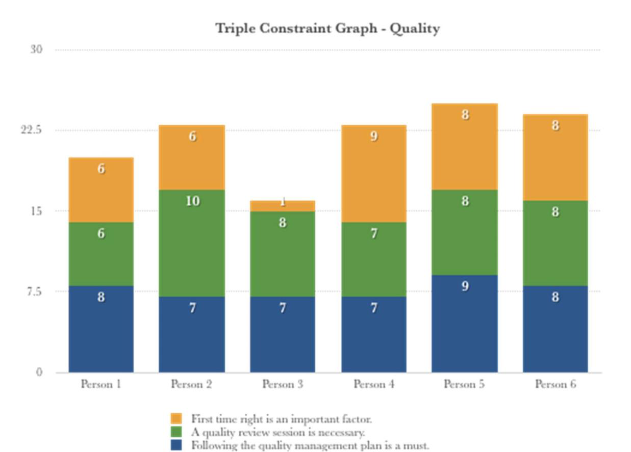 Our study adopted questionnaires but in the form of written interviews carried out face to face through phone calls and internal mail. Questionnaires are cheap, quick, and efficient to obtain a lot of information from many people (McLeod, 2018). The advantages of questionnaires are that they are cost efficient, practical to gather data and results are quick and easy to collect while being scalable (Debois, 2016). On the other hand, some questions may be difficult to analyze, may lack personalization or have differences in understanding and interpretation (Debois, 2016). For a good questionnaire, it is important to lead respondents to answer questions appropriately to capture the needed data (SmartSurvey Blog, 2018). The questionnaires were put into place through interviews, focusing questions on the ten bodies of knowledge (appendices 1 and 2), but particularly the triple constraint. The questionnaire was developed through altering pre-existing questions from academic sources (Serrador and Turner, 2015; Silvius, et al., 2017). Some changes were made to questions, so they better suited our research and profile of company X. The questions mainly focused on project management, including the triple constraint of time, quality, and scope. Respondents provided a response on a scale of 1-10 (1 being the least important, 10 being the most important). Respondents were asked to rank the level of importance between time, quality and scope and project success perceived by the sponsor, client and project team and the performance of project efficiency in time, cost, and scope. The project was nationwide, taking place within Australia.