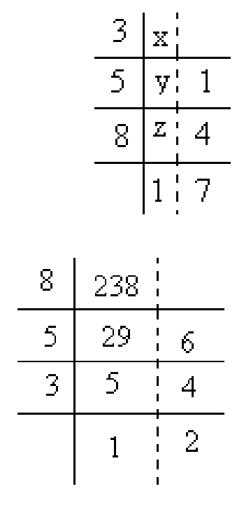 leaves remainders 1 and 4 respectively. When it is successively divided