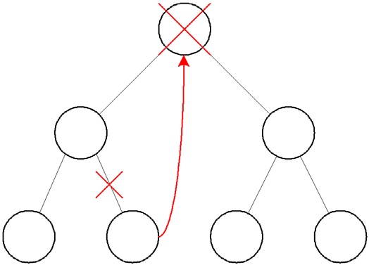 • Deletion of a node with a single outdegree branch/one child node – this is also relatively straightforward, the reference to the deleted node can just be replaced with a reference to the child of the deleted node;