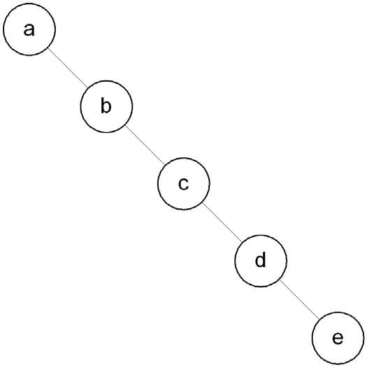 from the input data {a, b, c, d, e}, which would result in the BST illustrated in Figure 9.9.