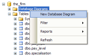 Once you have created your database, you should use SSMS to create an ER diagram and use this to verify that your implementation matches your design. This can be done by right clicking on the “Database Diagrams” folder of the database in the Object Explorer in SSMS.