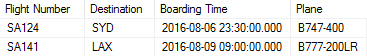 Number”, “Destination”, “Boarding Time” and “Plane”. Order the results