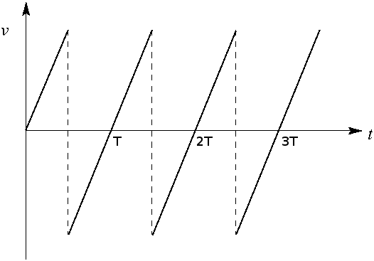 6. A ball is dropped from a height h on a floor and suffers multiple perfectly elastic bounces. The velocity vs t graph is as shown. Here time T depicts the time required to complete one cycle.