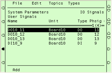 • Create a new IO unit named by Board10, which include 16 input signals and 16 output signals, the unit bus is located on the Base and the Address is set to be 10, Unit Type = d328.