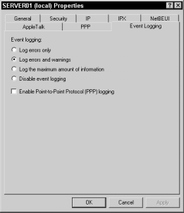 There is only one configurable option on the AppleTalk tab in a Windows 2000 remote access server’s Properties dialog box.This tab is only available when the AppleTalk protocol is installed on the remote access server.